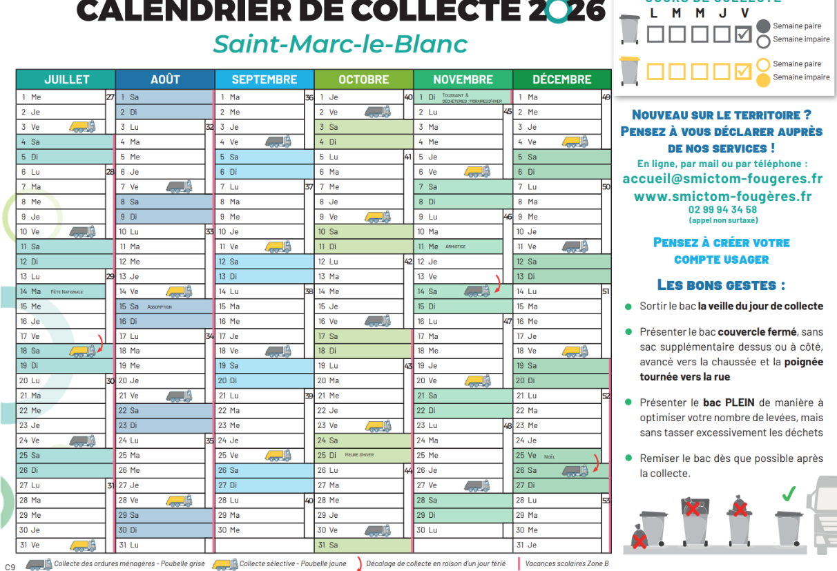 Retrouvez le calendrier des collectes d'ordures ménagères pour 2026